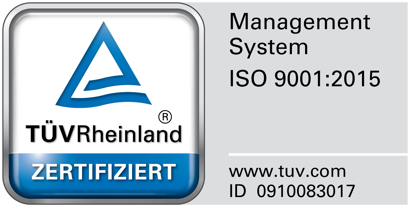 Wir sind nach der DIN ISO 9001 vom TÜV Rheinland zertifiziert worden.